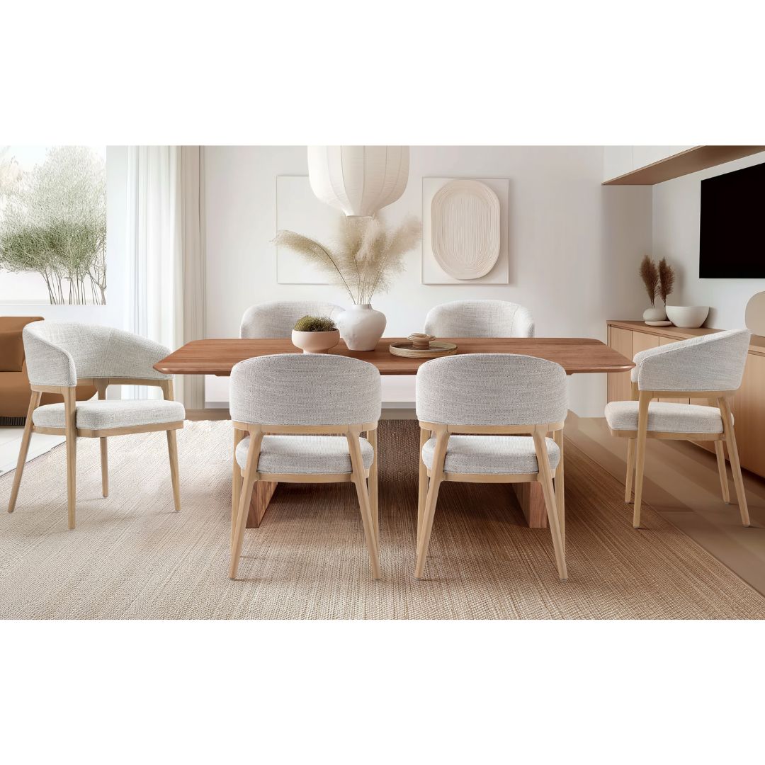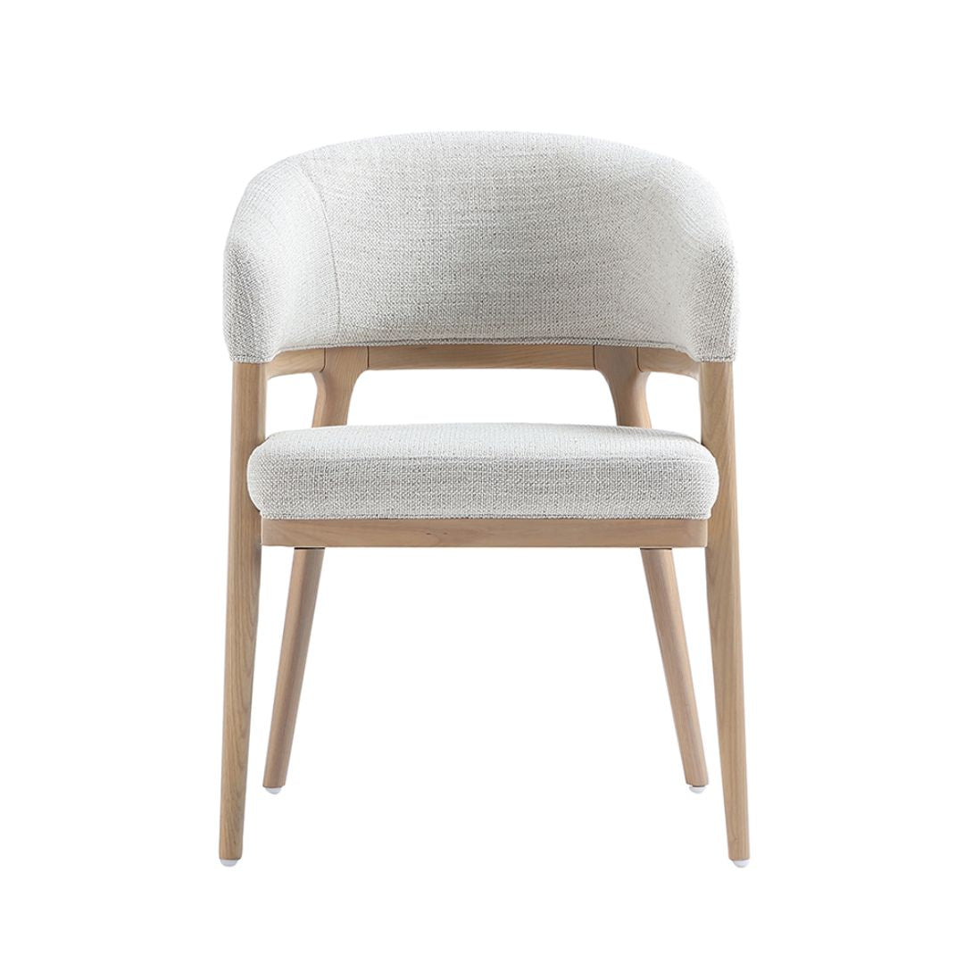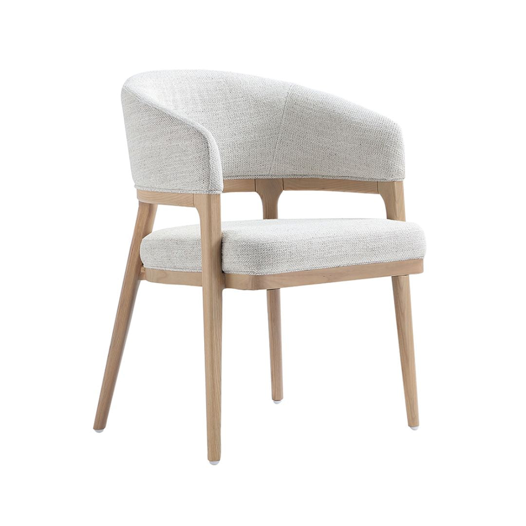 White Linen Upholstery | Ash Wood Legs with oak Finish